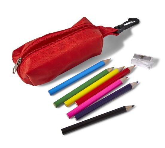 Etui met potloden en puntenslijper 4 kleuren